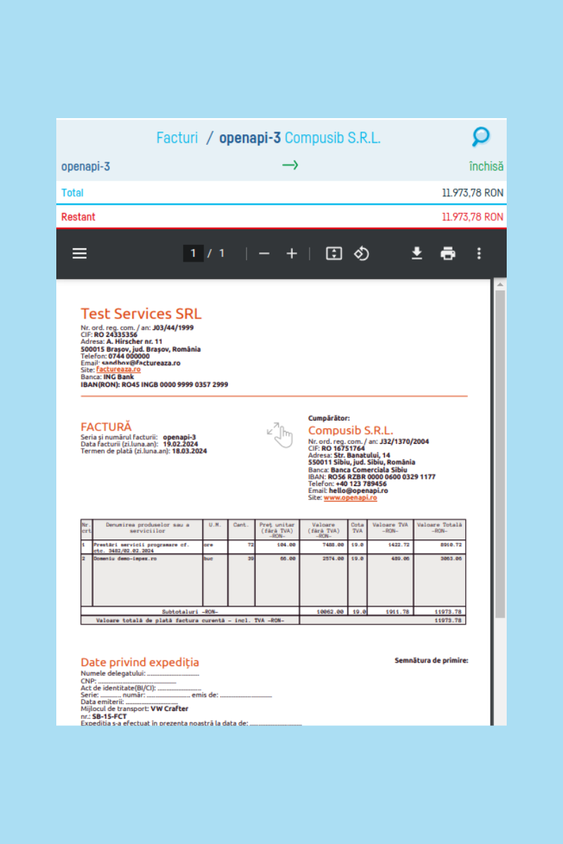 Se va deschide o nouă pagină în care poți edita factura așa cum ai nevoie. La final, nu uita să o salvezi.