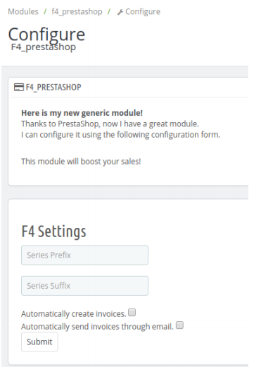 După generare, facturile vor fi vizibile în tabul F4_prestashop (unde la început ne-am autentificat) cu link-uri către aplicația facturează.
